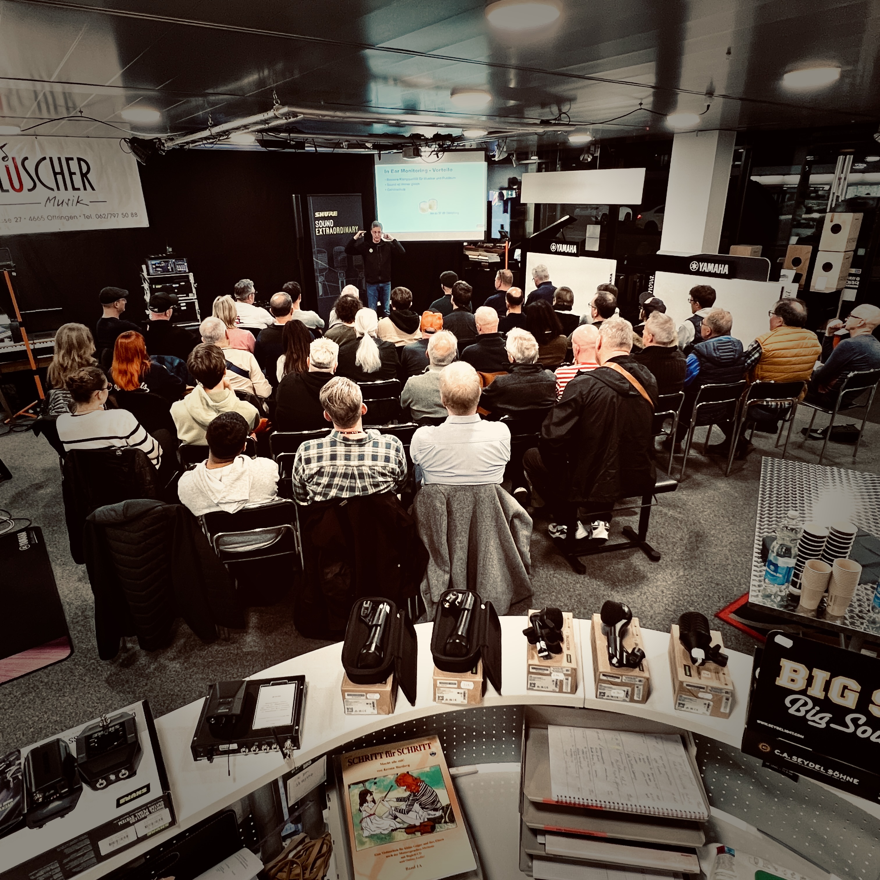 Der Workshop ist ausgebucht! Gerne sind wir aber auch während unseren regulären Oeffnungszeiten für Sie da, wenn Sie sich für In Ear Monitoring interessieren!